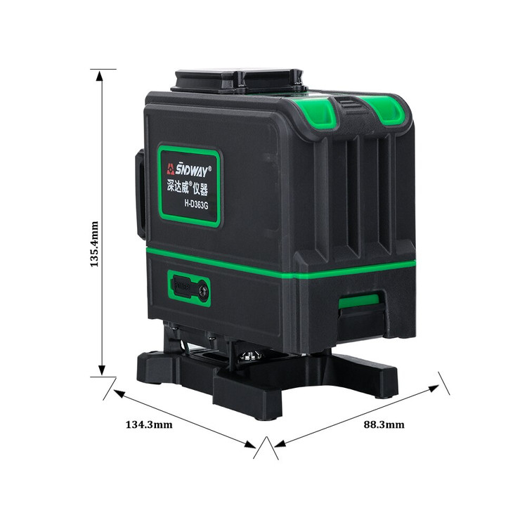 با استفاده از این محصول، قابلیت کار در دورتادور دستگاه وجود دارد. بهعبارتدیگر، سه خط تراز قابل رویت در این مدل از تمامی جهات قابل دیده میشود. سه خط لیزر این تراز، هم در راستای افق و هم در راستای عمود قرار میگیرند. حداکثر برد این دستگاه، تا جایی که خط لیزر دیده شود، 30 متر است. خطای دستگاه به ازای هر 15 متر، از 3 میلیمتر تجاوز نمیکند. یک قفل سختافزاری در جلو تراز قرار دارد که این قفل برای حفظ قطعات داخلی دستگاه در زمان جابجایی است؛ یعنی پس از قفلکردن دستگاه و قرار دادن آن در کیف مخصوص، با جابجا کردن محصول هیچ آسیبی به دستگاه وارد نمیشود. به همراه این دستگاه یک کیف مخصوص و یک پایهی مغناطیسی با قابلیت نصب روی سهپایه عرضهشده است. به کمک پایهی ابزار میتوانید این محصول را بهراحتی به سطوح فلزی متصل کرده و از آن استفاده کنی