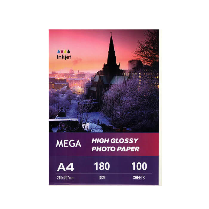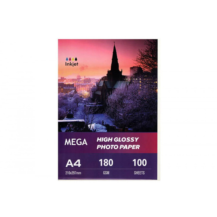 کاغذ چاپ عکس گلاسه مگا مدل 180g سایز A4 بسته 100 عددی
