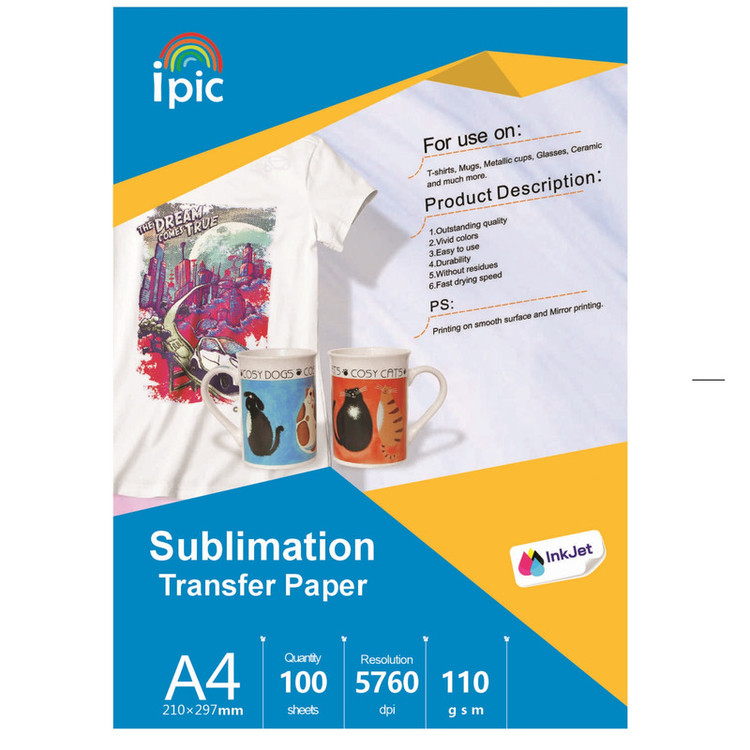 کاغذ چاپ سابلیمیشن آی پیک جزو واجبات در انجام فرآیند چاپ است. مصرف اصلی این محصول در صنعت چاپ سابلیمیشن، انتقال جوهر روی کاغذ به روی سطح محصول خام سابلیمیشن است.ابتدا طرح دلخواه با پرینتر جوهر افشان و جوهر مخصوص سابلیمیشن چاپ میگردد؛ سپس توسط دستگاه پرس حرارتی سابلیمیشن، طرح روی کاغذ سابلیمیشن بر روی محصول خام سابلیمیشن انتقال پیدا میکند. کاغذ سابلیمیشن آی پیک مقاومت دمایی بالایی دارد و تا 95% رنگ تصویر پرینت گرفته شده از روی این کاغذ به محصول خام منتقل میگردد. بدیهی است که کیفیت این کاغذ در وضوح و کیفیت تصویر چاپ شده نقش بسزایی دارد. سه ویژگی مهم کاغذ سابلیمیشن آی پیک ipic: یک لایه کوتینگ برای جذب جوهر، وظیفه اصلی این بخش انتقال جوهر و جلوگیری از دویدن جوهر روی کاغذ است. متریال اصلی کاغذ که همان خمیر کاغذ است. این بخش از مقداری خمیر چوب نرم و خمیر چوب سخت تشکیل شده است تا ضمن کارایی بیشتر ظاهر مناسبی نیز داشته باشد.یک لایه نسوز و دارای مقاومت حرارتی که قادر است 200 تا 230 درجه حرارت را تحمل کند.
