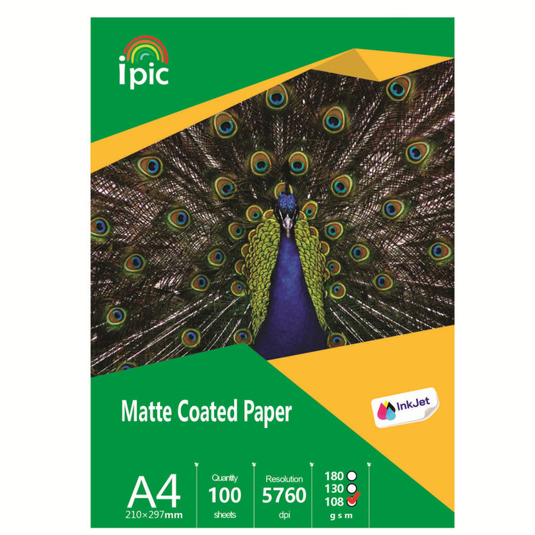 کاغذ کتد 108 گرم «آی پیک »(ipic) یک دیگر از محصولات شرکت آی پیک جهت استفاده در پرینترهای جوهرافشان میباشد. بافت این کاغذ به گونه ای است که جزئیات تصویر را به خوبی نشان می دهد. کاغذ کوتد آی پیک 108 گرم برای چاپ با تمام پرینترهای جوهرافشان مناسب است. اگر یک پرینتر خانگی دارید می توانید عکس های خود را که با دوربینهای حافظهدار یا تلفن همراه عکاسی کرده اید را روی کاغذ آی پیک چاپ کنید و از کیفیت آن لذت ببرید. شرکت آی پیک این کاغذ را در یک بسته بندی 100 عددی و در سایز A4 تولید و ارائه کرده است. این تعداد کاغذ علاوه بر اینکه تا مدتها خیال شما را از بابت خرید کاغذ راحت می کند، می تواند از نظر اقتصادی هم مقرون به صرفه باشد. آتلیه های عکاسی، دفاتر فنی، مراکزی مثل سی تی اسکن و ام ار آی و در نهایت مصرف کننده های خانگی که بیشترین کاربرد را از این کاغذ دارند، می توانند از کاغذ کتد آی پیک استفاده کنند. هر بسته کاغذ کتد آی پیک در بسته بندی 100 برگی و ابعاد 29.7 سانتی متر طول و 21 سانتی متر عرض و حدود 665 گرم وزن به بازار عرضه شده است .