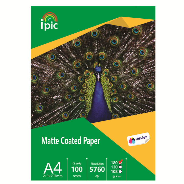 کاغذ کوتد 180 گرم «آی پیک »(ipic) یک دیگر از محصولات شرکت آی پیک جهت استفاده در پرینترهای جوهرافشان میباشد. بافت این کاغذ به گونه ای است که جزئیات تصویر را به خوبی نشان می دهد. کاغذ کوتد آی پیک 180 گرم برای چاپ با تمام پرینترهای جوهرافشان مناسب است. اگر یک پرینتر خانگی دارید می توانید عکس های خود را که با دوربینهای حافظهدار یا تلفن همراه عکاسی کرده اید را روی کاغذ آی پیک چاپ کنید و از کیفیت آن لذت ببرید. شرکت آی پیک این کاغذ را در یک بسته بندی 100 عددی و در سایز A4 تولید و ارائه کرده است. این تعداد کاغذ علاوه بر اینکه تا مدتها خیال شما را از بابت خرید کاغذ راحت می کند، می تواند از نظر اقتصادی هم مقرون به صرفه باشد. آتلیه های عکاسی، دفاتر فنی، مراکزی مثل سی تی اسکن و ام ار آی و در نهایت مصرف کننده های خانگی که بیشترین کاربرد را از این کاغذ دارند، می توانند از کاغذ کتد آی پیک استفاده کنند. هر بسته کاغذ کتد آی پیک در بسته بندی 100 برگی و ابعاد 29.7 سانتی متر طول و 21 سانتی متر عرض و حدود 1100 گرم وزن به بازار عرضه شده است .