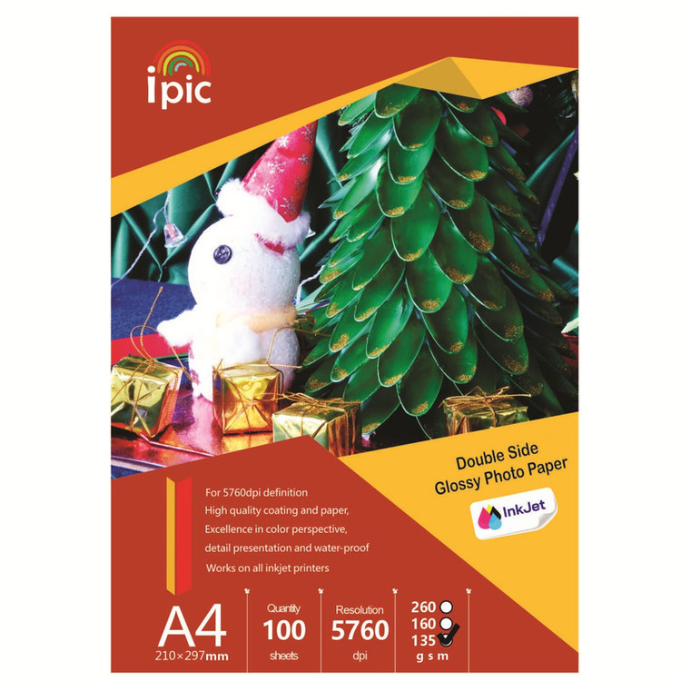کاغذ چاپ عکس آی پیک مدل فتوگلاسه 135 گرم دورو چاپ A4 بسته 100 عددی