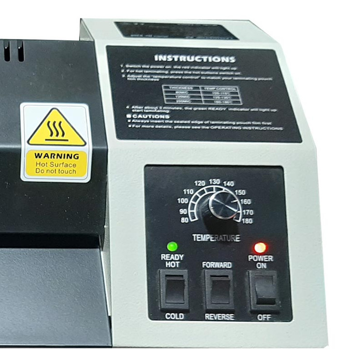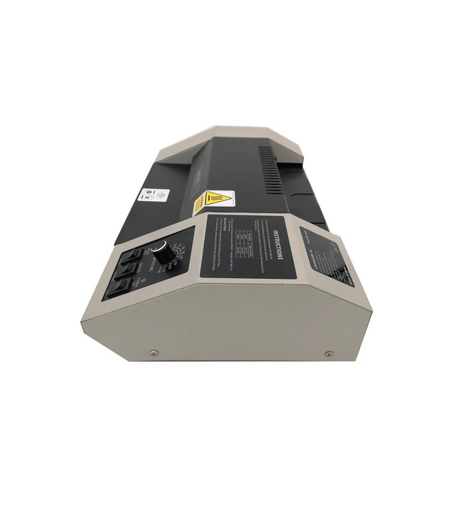 بدنه فلزی، دارای 4 غلطک، بازدهی بالا و گرمادهی یکنواخت، دکمه رفت و برگشت، دمای عملیاتی 80 تا 180 درجه، سرعت لمینت 50 سانتی متر در دقیقه، ضخامت لمینت تا 200 میکرون