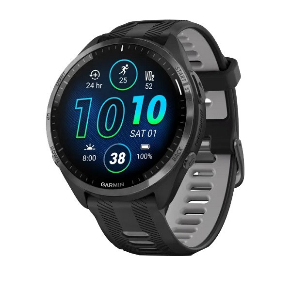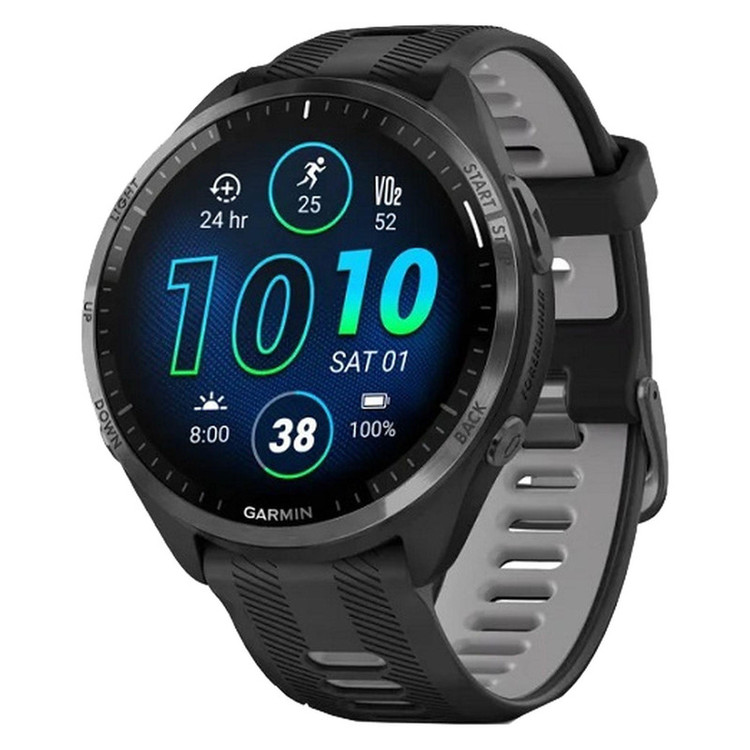 ساعت گارمین Forerunner 965 Forerunner® 965 Carbon Grey DLC Titanium Bezel with Black Case and Black/Powder Grey Silicone Band PART NUMBER 010-02809-10 ساعت گارمین فوررانر 965 با دوربدنه مشکی و بند دورنگ مشکی/ خاکستری Forerunner® 965 Carbon Grey DLC Titanium Bezel with Black Case and Amp Yellow/Black Silicone Band PART NUMBER 010-02809-12 ساعت گارمین فوررانر 965 با دوربدنه مشکی و بند دورنگ سبز/مشکی Forerunner® 965 Titanium Bezel with Whitestone Case and Whitestone/Powder Grey Silicone Band PART NUMBER 010-02809-11 ساعت گارمین فوررانر 965 با دوربدنه تیتانیومی بدون رنگ و بند دورنگ سفید /خاکستری ساعت گارمین Forerunner 965 در مارس 2023 معرفی شده . سری فوررانر گارمین یکی از موفق ترین ساعت ورزشی های دنیا میباشد . ساعت گارمین Garmin Forerunner 965 نسبت به مدل قبلی یعنی 955 پیشرفت های اساسی داشته.دوربدنه فلزی از جنس تیتانیوم اضافه شده .صفحه نمایش AMOLED آمولد اضافه شده.صفحه نمایش به اندازه 2.5 میلیمتر بزرگتر شده.باطری ساعت تقویت شده .سنسورنورمحیط Ambient light sensor اضافه شده .کیفیت بند بالاتر رفته و از بند های 2 رنگ بسیار زیبا استفاده شده .قابلیت Cardio workouts اضافه شده.قابلیت Spectator messaging اضافه شده .قابلیت NextFork™ navigation اضافه شده .باتری این ساعتGarmin نسبت به مدل قبلی بسیار قوی تر شده و با توجه به این که صفحه نمایش آمولد مصرف بالاتری دارد ، اما میزان شارژدهی این ساعت 23 روز شده. همچنین این ساعت دارای سنسور نورمحیط است که با توجه به میزان نور محیط ، نور صفحه نمایش را تغییر میدهد . دارای سنسور های GPS و GLONASS و Galileo و Multi-frequency Positioning وSatIQ™ Technology وGarmin Elevate™ wrist heart rate monitor وBarometric altimeter وCompass وGyroscope وAccelerometer و Thermometer وAmbient light sensor وPulse Ox Blood Oxygen Saturation Monitor هستند .