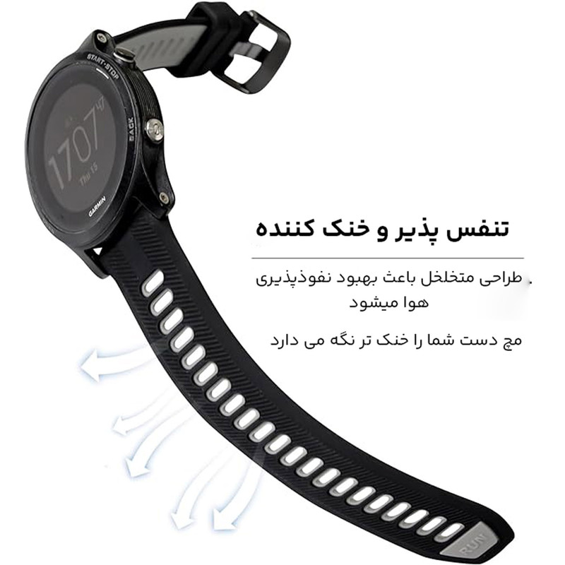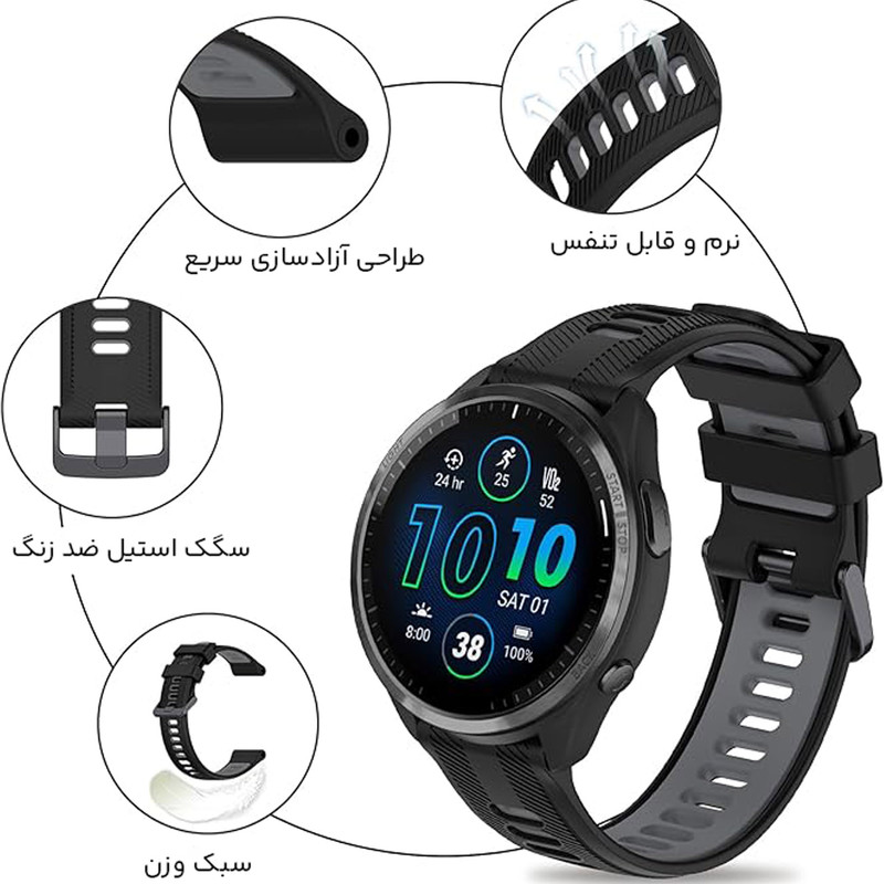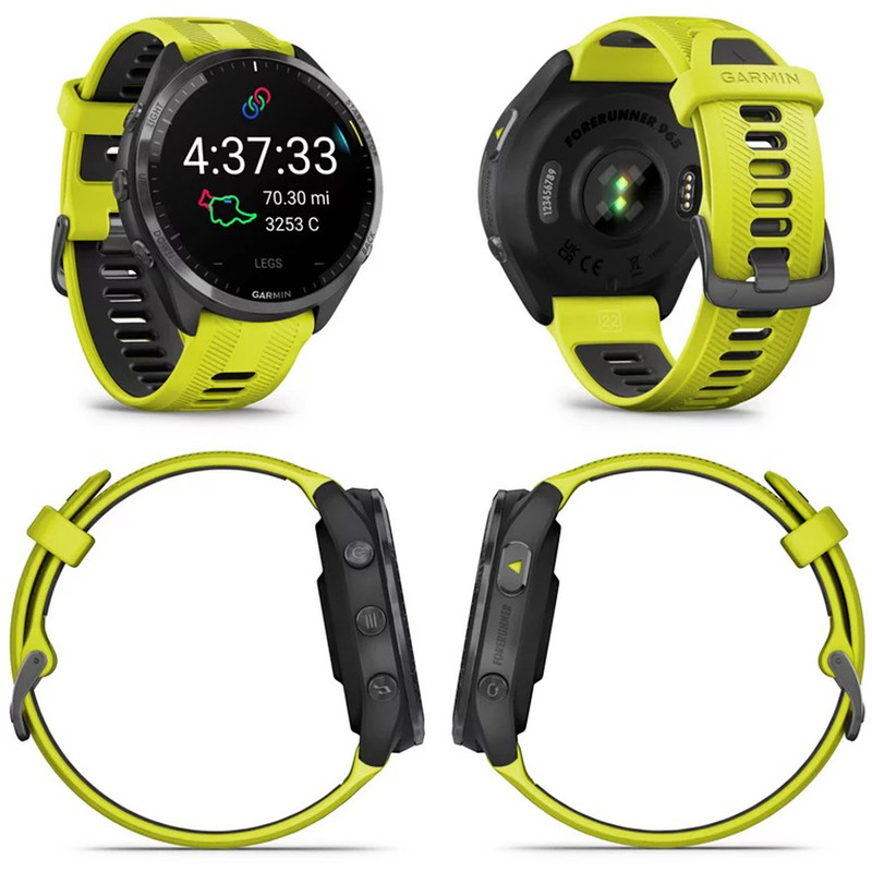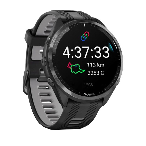 ساعت گارمین Forerunner 965 Forerunner® 965 Carbon Grey DLC Titanium Bezel with Black Case and Black/Powder Grey Silicone Band PART NUMBER 010-02809-10 ساعت گارمین فوررانر 965 با دوربدنه مشکی و بند دورنگ مشکی/ خاکستری Forerunner® 965 Carbon Grey DLC Titanium Bezel with Black Case and Amp Yellow/Black Silicone Band PART NUMBER 010-02809-12 ساعت گارمین فوررانر 965 با دوربدنه مشکی و بند دورنگ سبز/مشکی Forerunner® 965 Titanium Bezel with Whitestone Case and Whitestone/Powder Grey Silicone Band PART NUMBER 010-02809-11 ساعت گارمین فوررانر 965 با دوربدنه تیتانیومی بدون رنگ و بند دورنگ سفید /خاکستری ساعت گارمین Forerunner 965 در مارس 2023 معرفی شده . سری فوررانر گارمین یکی از موفق ترین ساعت ورزشی های دنیا میباشد . ساعت گارمین Garmin Forerunner 965 نسبت به مدل قبلی یعنی 955 پیشرفت های اساسی داشته.دوربدنه فلزی از جنس تیتانیوم اضافه شده .صفحه نمایش AMOLED آمولد اضافه شده.صفحه نمایش به اندازه 2.5 میلیمتر بزرگتر شده.باطری ساعت تقویت شده .سنسورنورمحیط Ambient light sensor اضافه شده .کیفیت بند بالاتر رفته و از بند های 2 رنگ بسیار زیبا استفاده شده .قابلیت Cardio workouts اضافه شده.قابلیت Spectator messaging اضافه شده .قابلیت NextFork™ navigation اضافه شده .باتری این ساعتGarmin نسبت به مدل قبلی بسیار قوی تر شده و با توجه به این که صفحه نمایش آمولد مصرف بالاتری دارد ، اما میزان شارژدهی این ساعت 23 روز شده. همچنین این ساعت دارای سنسور نورمحیط است که با توجه به میزان نور محیط ، نور صفحه نمایش را تغییر میدهد . دارای سنسور های GPS و GLONASS و Galileo و Multi-frequency Positioning وSatIQ™ Technology وGarmin Elevate™ wrist heart rate monitor وBarometric altimeter وCompass وGyroscope وAccelerometer و Thermometer وAmbient light sensor وPulse Ox Blood Oxygen Saturation Monitor هستند .