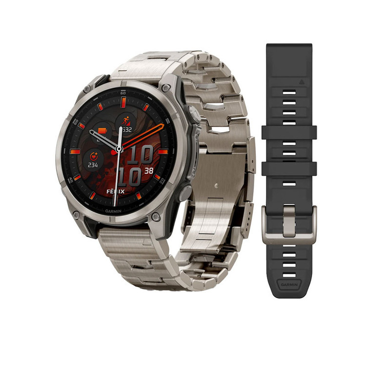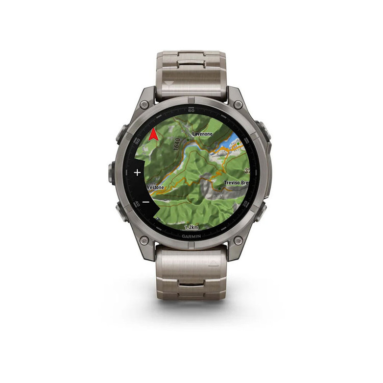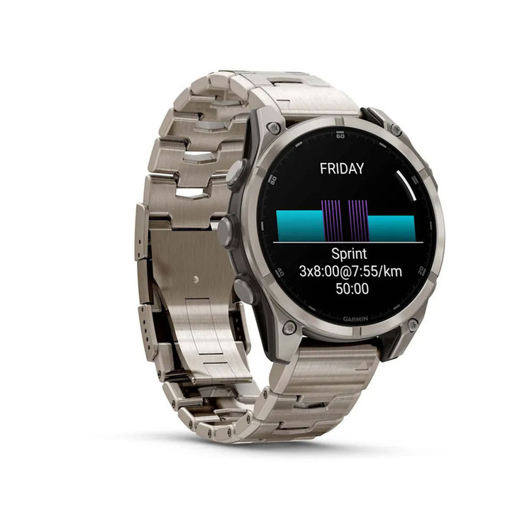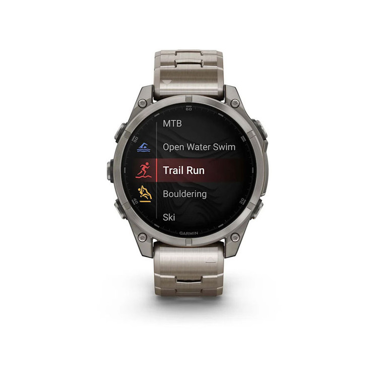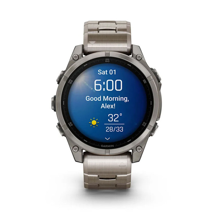 ساعت هوشمند گارمین مدل Fenix 8 - 47mm دارای قابلیت های صفحه نمایش لمسی، کنترل موسیقی، کنترل سطح اکسیژن خون، ضد آب، بند تیتانیوم