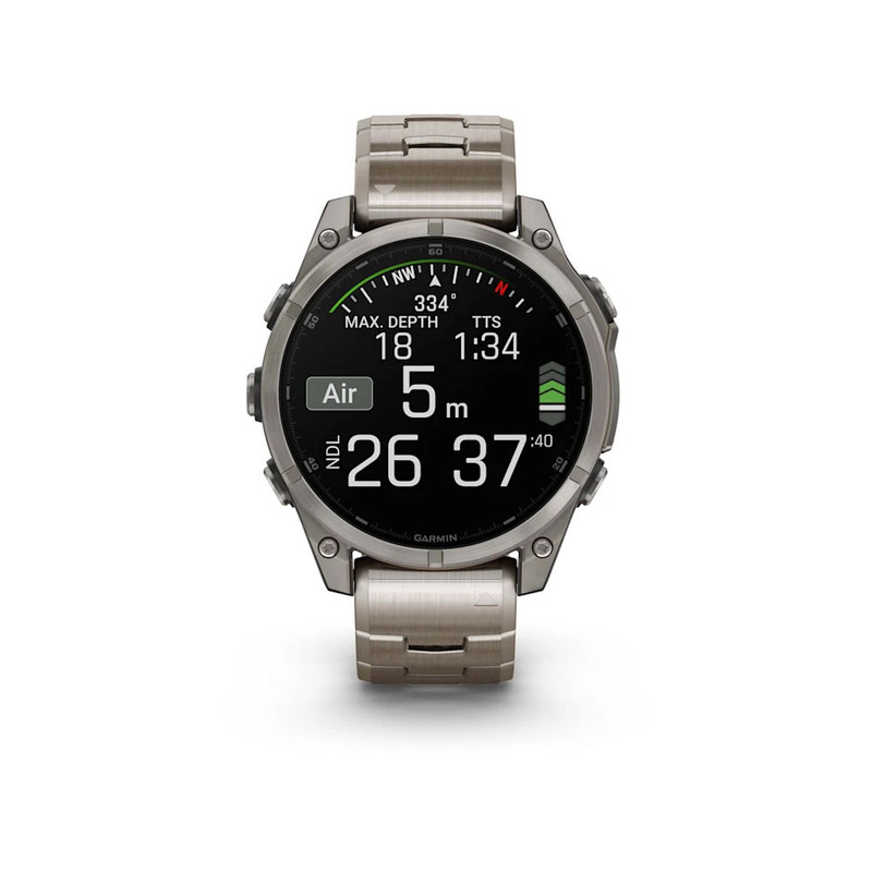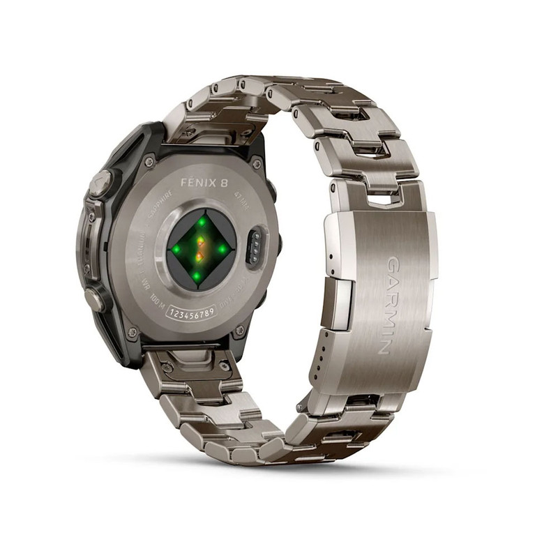 ساعت هوشمند گارمین مدل Fenix 8 - 47mm دارای قابلیت های صفحه نمایش لمسی، کنترل موسیقی، کنترل سطح اکسیژن خون، ضد آب، بند تیتانیوم