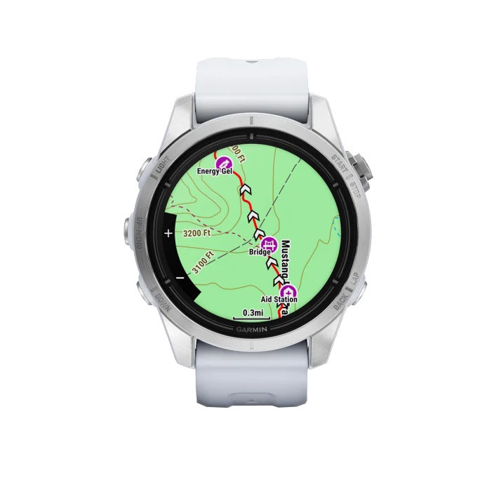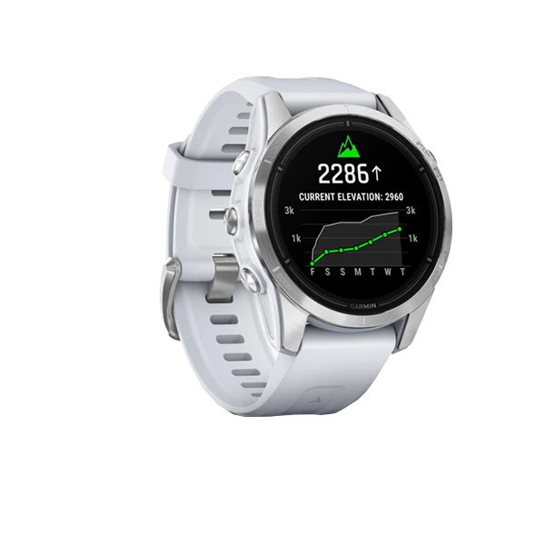 ساعت گارمین اپیکس پرو (نسل2) استاندارد – سایز 42 میلیمتر با بدنه نقره ای و بند سفید سیلیکونی گارمین همیشه همه سلیقه ها را در نظر میگیرد . پس از استقبال ورزشکاران از نسل دوم ساعت Garmin Epix شرکت گارمین تصمیم گرفته که هم زمان با معرفی سری پرو فنیکس Garmin Pro Series سری پرو اپیکس را هم معرفی کند . اما بر خلا ف فنیکس سری پرو اپیکس نسل2 دستخوش تغییرات قابل توجهی شده . که مهم ترین آنها ، ارائه این محصول در سه سایز کوچک 42 میلیمتر و متوسط 47 میلیمتر و بزرگ 51 میلیمتر است . اما این تنها تغییر مهم اپیکس نبوده و برای اولین بار اپیکس گارمین با چراغ قوه FLASH LED ارائه شده . در واقع هر سه سایز این ساعت دارای یک چراغ قوه فلش ال ای دی هستند که با رنگ سفید و قرمز روشن می شود . طبق نظرسنجی از ورزشکاران به علت دم دست بودن ، این چراغ قوه بسیار کاربردی است . همچنین سنسور ضربان قلب این ساعت ها به سنسور جدید ضربان قلب اپتیکال Garmin Evelate ارتقاع یافته که نسبت به مدل های قبلی دقت بیشتری دارد . با این سنسور شما همچنین می توانید از قابلیت ECG سنسور نوار قلب که قبلا در ساعت گارمین VENU 2 Plus عرضه شده بود بهره مند شوید. یکی دیگر از تغییرات در این سری از ساعت های گارمین تبدیل درگاه ارتباطی آن به USB-C است ، که سرعت بیشتری در انتقال دیتا و همچنین شارژ ساعت دارد . هر سه سایز این ساعت مجهز به صفحه نمایش AMOLED و البته لمسی Touch Screen هستند و شارژ خورشیدی ندارند. حدود 30 پروفایل ورزشی جدید به این سری ساعت ها اضافه شده که می توان گفت بزرگترین جهش را در پروفایل های ورزشی داشته است. همچنین در این سری از ساعت های گارمین EPIX (GEN2) PRO برای حالت SatIQ پیکربندی شدهاند، به این معنی که در مواقع لزوم از GNSS چند باندی استفاده میکنند. در گارمین اپیکس 2 پرو حالت جدید Redshift وجود دارد. در این حالت ساعت کل نمایشگر را به سایههای قرمز/مشکی تغییر میدهد که برای استفاده شبانه بسیار کاربرد دارد . و بسیاری امکانات و قابلیت های جدیدی که به این مجموعه اضافه شده .