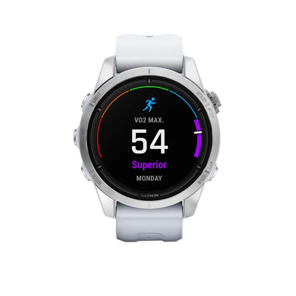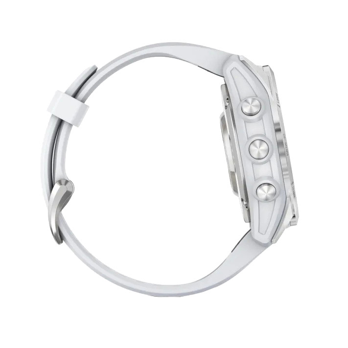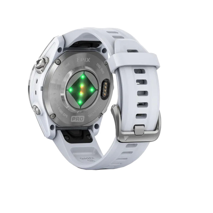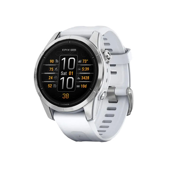 ساعت گارمین اپیکس پرو (نسل2) استاندارد – سایز 42 میلیمتر با بدنه نقره ای و بند سفید سیلیکونی گارمین همیشه همه سلیقه ها را در نظر میگیرد . پس از استقبال ورزشکاران از نسل دوم ساعت Garmin Epix شرکت گارمین تصمیم گرفته که هم زمان با معرفی سری پرو فنیکس Garmin Pro Series سری پرو اپیکس را هم معرفی کند . اما بر خلا ف فنیکس سری پرو اپیکس نسل2 دستخوش تغییرات قابل توجهی شده . که مهم ترین آنها ، ارائه این محصول در سه سایز کوچک 42 میلیمتر و متوسط 47 میلیمتر و بزرگ 51 میلیمتر است . اما این تنها تغییر مهم اپیکس نبوده و برای اولین بار اپیکس گارمین با چراغ قوه FLASH LED ارائه شده . در واقع هر سه سایز این ساعت دارای یک چراغ قوه فلش ال ای دی هستند که با رنگ سفید و قرمز روشن می شود . طبق نظرسنجی از ورزشکاران به علت دم دست بودن ، این چراغ قوه بسیار کاربردی است . همچنین سنسور ضربان قلب این ساعت ها به سنسور جدید ضربان قلب اپتیکال Garmin Evelate ارتقاع یافته که نسبت به مدل های قبلی دقت بیشتری دارد . با این سنسور شما همچنین می توانید از قابلیت ECG سنسور نوار قلب که قبلا در ساعت گارمین VENU 2 Plus عرضه شده بود بهره مند شوید. یکی دیگر از تغییرات در این سری از ساعت های گارمین تبدیل درگاه ارتباطی آن به USB-C است ، که سرعت بیشتری در انتقال دیتا و همچنین شارژ ساعت دارد . هر سه سایز این ساعت مجهز به صفحه نمایش AMOLED و البته لمسی Touch Screen هستند و شارژ خورشیدی ندارند. حدود 30 پروفایل ورزشی جدید به این سری ساعت ها اضافه شده که می توان گفت بزرگترین جهش را در پروفایل های ورزشی داشته است. همچنین در این سری از ساعت های گارمین EPIX (GEN2) PRO برای حالت SatIQ پیکربندی شدهاند، به این معنی که در مواقع لزوم از GNSS چند باندی استفاده میکنند. در گارمین اپیکس 2 پرو حالت جدید Redshift وجود دارد. در این حالت ساعت کل نمایشگر را به سایههای قرمز/مشکی تغییر میدهد که برای استفاده شبانه بسیار کاربرد دارد . و بسیاری امکانات و قابلیت های جدیدی که به این مجموعه اضافه شده .