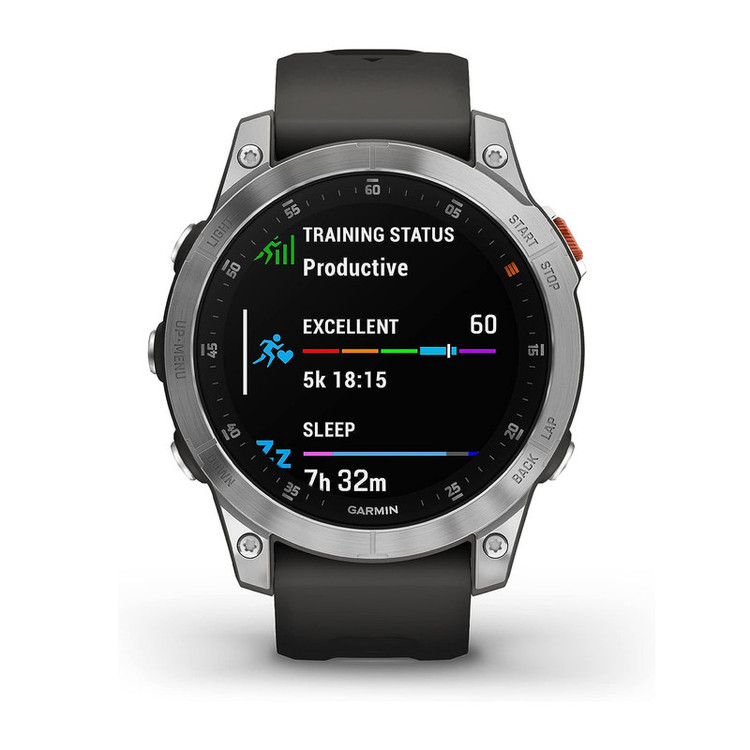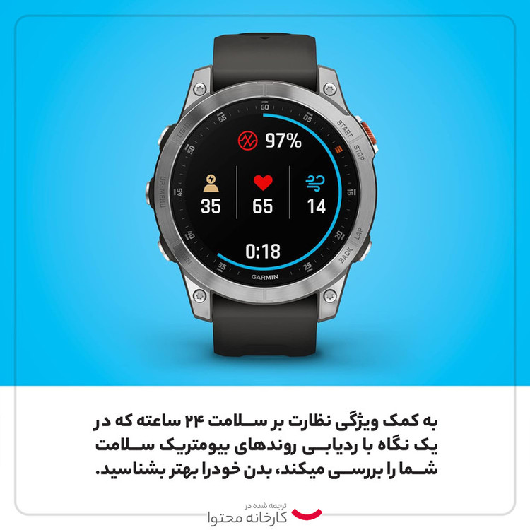 ساعت هوشمند گارمین مدل Epix gen 2 sapphire دارای قابلیت های صفحه نمایش رنگی، صفحه نمایش لمسی، کنترل موسیقی (Music Player) بند سیلیکون