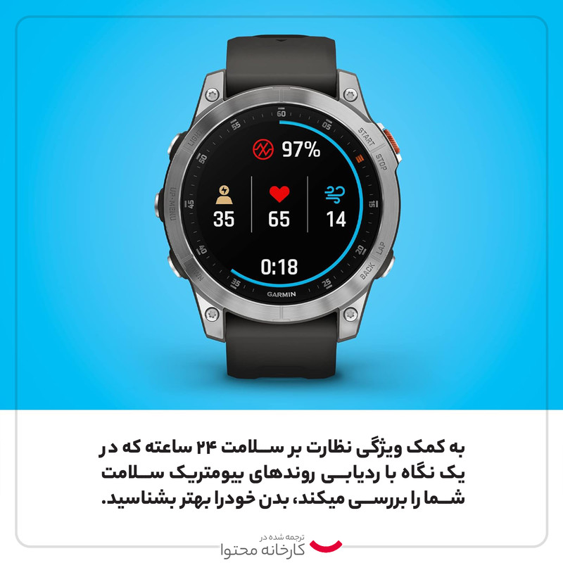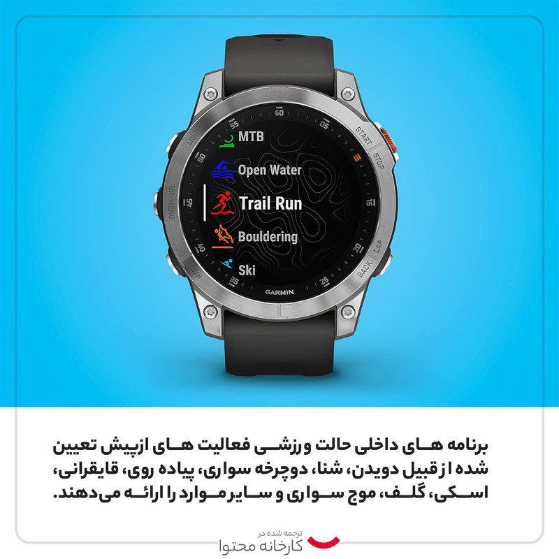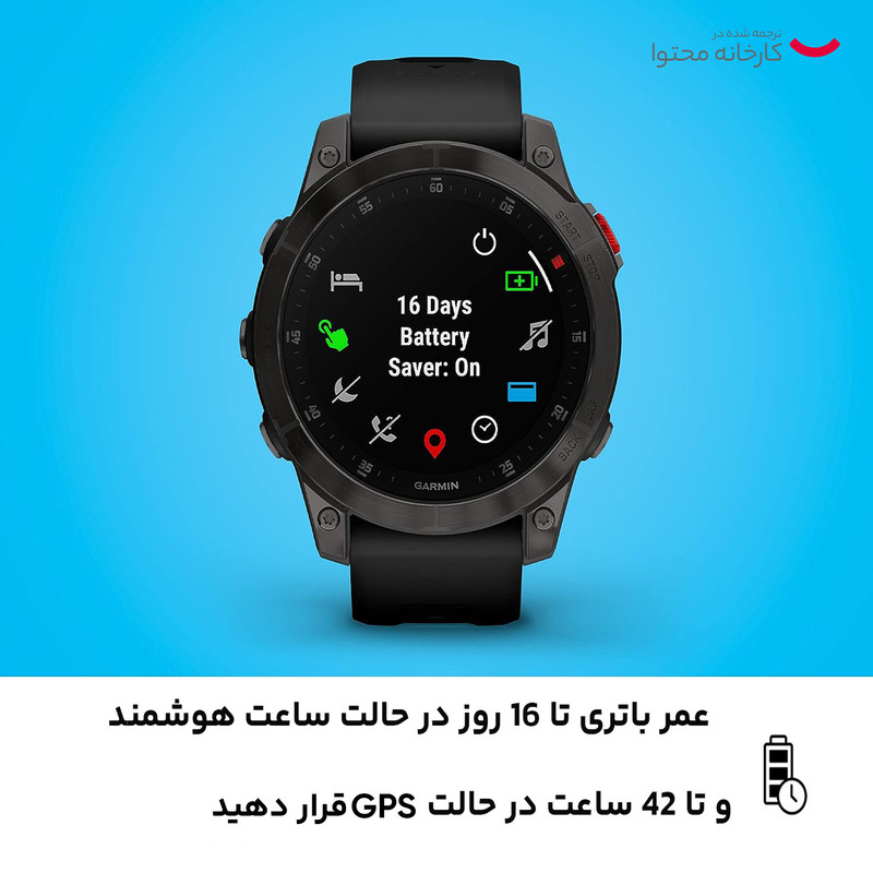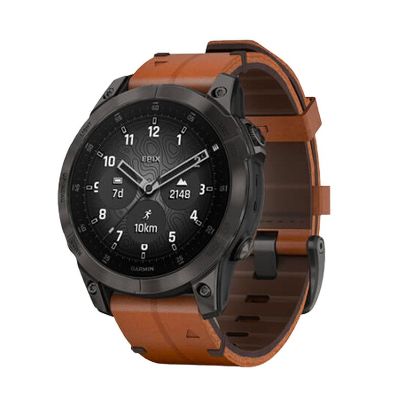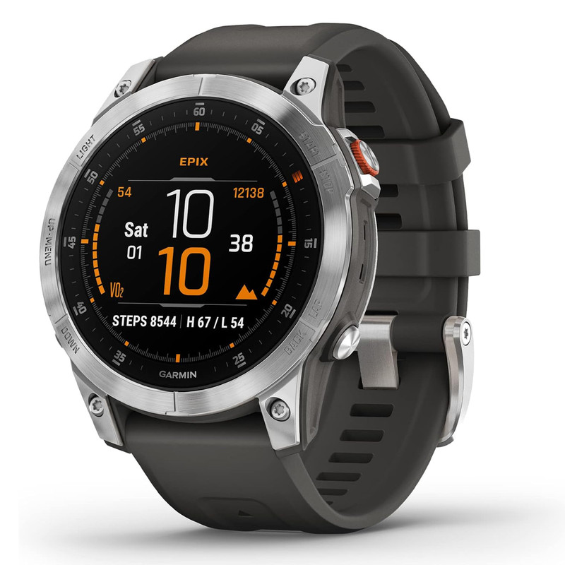 محصول سال 2022 گارمین نسل دوم از ساعت محبوب اپیکس ، یعنی اپیکس 2 یا epix (Gen 2) است . این ساعت با طراحی بسیار زیبا و شیک به بازار معرفی شده . ویژگی منحصر به فرد این ساعت نسبت به سری فنیکس این است که صفحه نمایش لمسی این ساعت از نوع AMOLED بوده و دارای شفافیت و نور زیاد و همچنین تراکم پیکسلی بالاست . ساعت گارمین اپیکس 2 برای اولین بار سه ویژگی صفحه لمسی و نمایشگر آمولد و شیشه سافایر را باهم به صورت همزمان در یک ساعت به بازار معرفی کرده. به این صورت که هر زمان که احتیاج به صفحه نمایش لمسی نداشتید ( مانند شرایط کوهنوردی و شنا ) میتوانید آن را خاموش کرده و از دکمه ها استفاده نمایید . محدودیتی وجود ندارد . رابط کاربری این ساعت نیز بسیار نرم و پرسرعت شده تا با صفحه نمایش لمسی راحت تر کار کنید . مشکی ( با پارت نامبر 010-02582-11) بدنه این مدل از ساعت اپیکس 2 از جنس تیتانیوم با پوشش ضد خش DLC به رنگ مشکی است . همچنین یک عدد بند مشکی ضد حساسیت 22 میلیمتری (از نوع Quickfit ) روی این ساعت وجود دارد . سفید ( با پارت نامبر 010-02582-21) بدنه این مدل از ساعت اپیکس 2 از جنس تیتانیوم با پوشش ضد خش DLC به رنگ سفید است . همچنین یک عدد بند مشکی ضد حساسیت 22 میلیمتری (از نوع Quickfit ) روی این ساعت وجود دارد . باطری این ساعت از نوع شارژی لیتیومی است و عمر آن در صورتی که در حالت اسمارت واچ باشد 16 روز است که برای ساعتی با صفحه نمایش AMOLED بسیار عالیست. درصورتی که در حالت always-on باشد عمر باطری به 6 روز میرسد . اگر تنظیمات ذخیره باتری را روشن کنید تا 21 روز میتوانید از ساعت استفاده کنید . تا 42 ساعت میتوانید GPS استفاده کنید .ساعت اپیکس 2 هم مانند فنیکس 7 دارای تمام سنسور هاست.جی پی اس GPS ، گلوناس وگالیله و MULTI-FREQUENCY POSITIONING -GLONASS -GALILEO