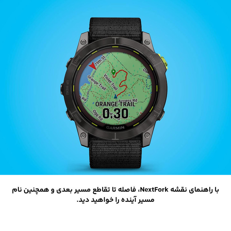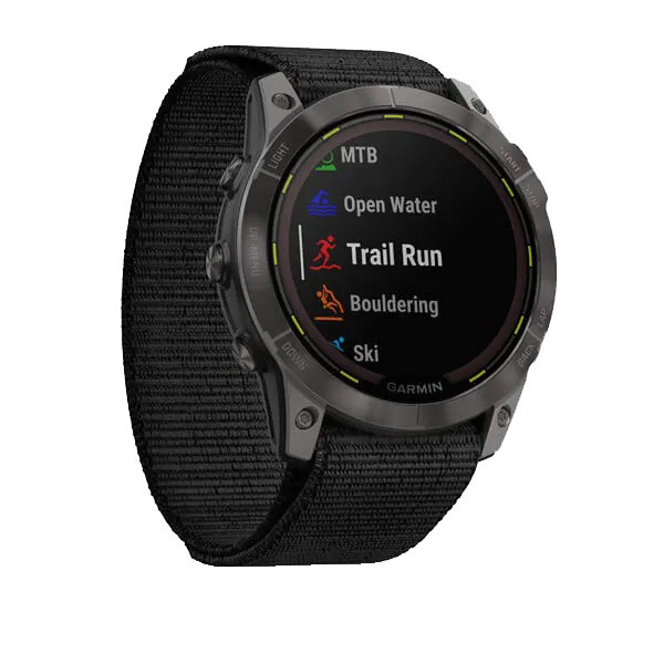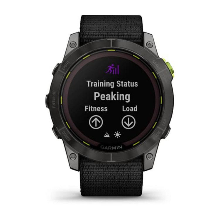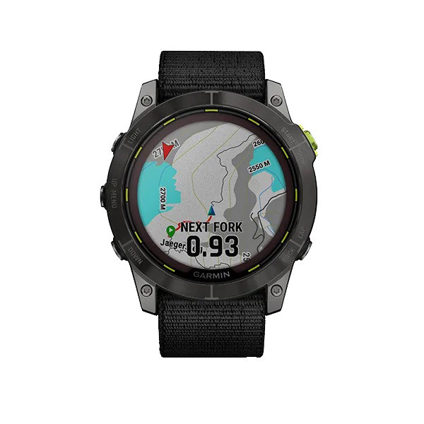 ساعت گارمین اندیورو 2 – Garmin Enduro 2 sport watch محصول آگوست 2022 است . یک ساعت مالتی اسپرت با وزن سبک و قابلیت های استثنایی . این ساعت دومین مدل از سری ساعت های محبوب endure گارمین است . خصوصیت بارز این مدل وزن بسیار سبک و البته باطری بسیار قوی این ساعت است . دور بدنه این ساعت از جنس تیتانیوم است . این ساعت دارای صفحه نمایش پاورسافایر Power Sapphire لمسی TochScreen و دارای شارژ خورشیدی Solar Charging است . ساعت اندیورو 2 همانند ساعت فنیکس 7 ایکس دارای چراغ ال ای دی LED Flashlight دو رنگ (سفید و قرمز) برای استفاده به عنوان چراغ قوه و همچنین چراغ هشدار است . صفحه نمایش این ساعت بزرگتر شده و سایز آن 1.4 اینچ میباشد. به همراه این ساعت یک عدد بند نایلونی چسبی 26 میلیمتری به نام Sport loop که بسیارسبک و نرم است وجود دارد . این بند مناسب ورزشکارانی ست که به ساعت سبک احتیاج دارند و همچنین بسیار راحت و سریع باز و بسته میشود . ساعت گارمین اندیورو 2 دارای یک عدد بند سیلیکونی 26 به رنگ مشکی هم هست . باطری این ساعت در حالت Smartwatch تا 34 روز و با شارژ خورشیدی Solar تا 46 روز روشن میماند . همچنین عمر باطری این ساعت در حالت Power Saving Mode تا 111 روز و با سولار تا 550 روز است . همچنین دارای استاندارد ضد آب و گرد و غبار 10ATM میباشد . ساعت اندیورو2 دارای حافظه 32 گیگابایتی برای ذخیره موزیک و نقشه است .